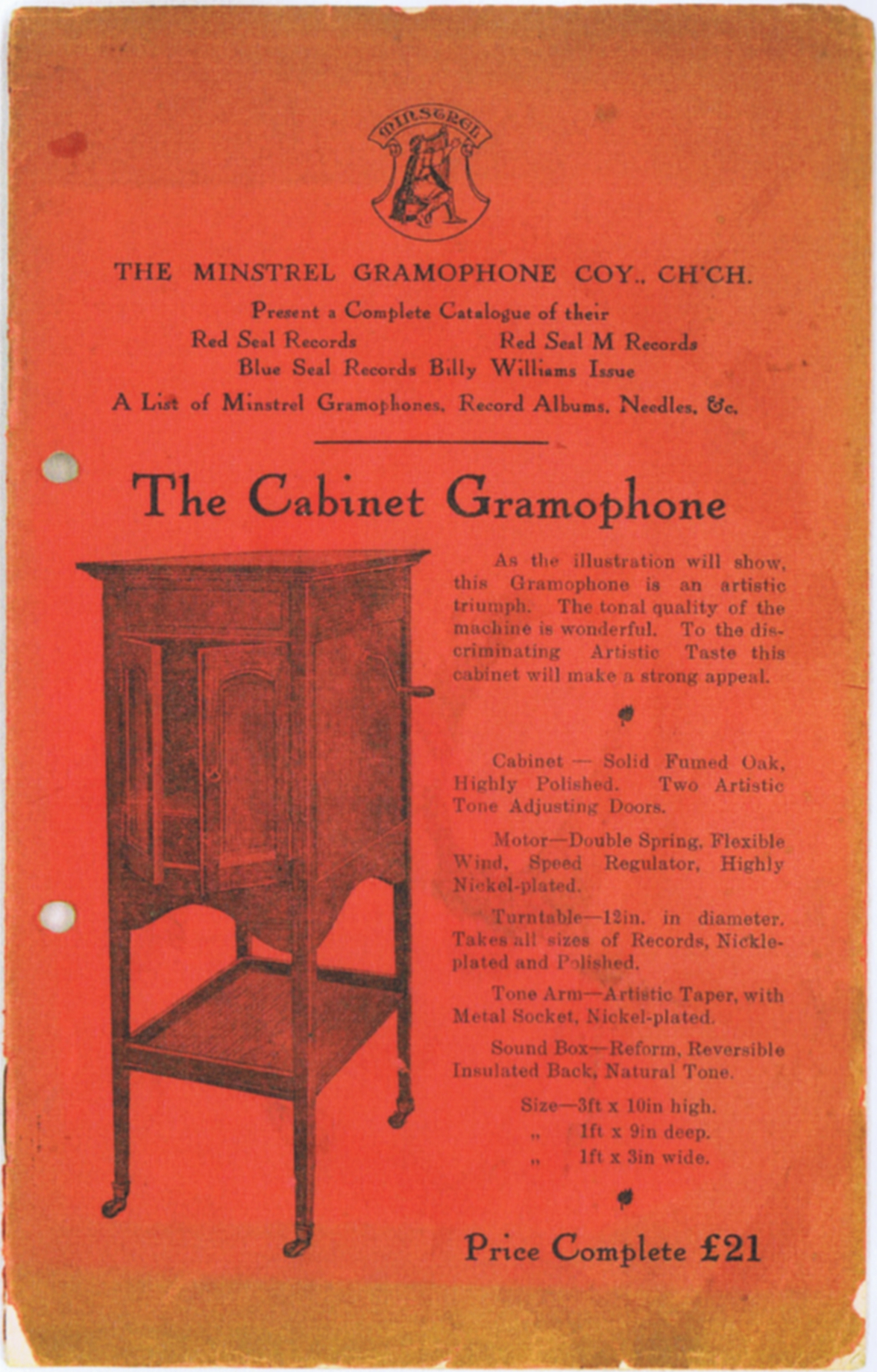 A 1914 catalogue from the Minstrel Gramophone