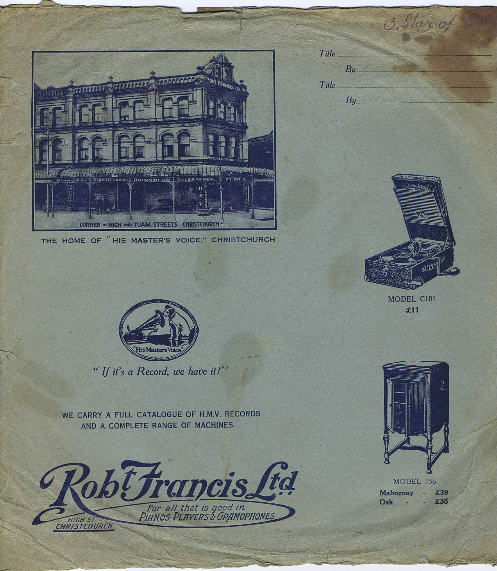 Paper Sleeve, 10, HMV