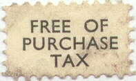 The "Free of Purchase Tax" stamp was supplied to record dealers by the